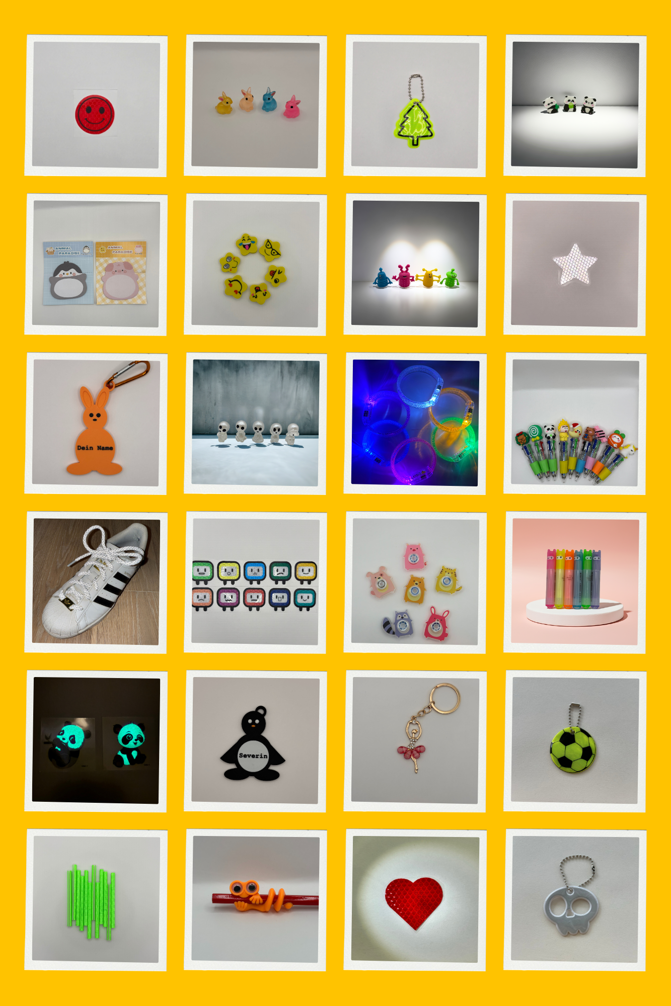 Reflektor-Sticker und Anhänger, personalisierbare 3D-Buddies, coole LED- und Schul-Artikel. Perfekt für jedes Türchen, direkt aus der Schweiz versandt.