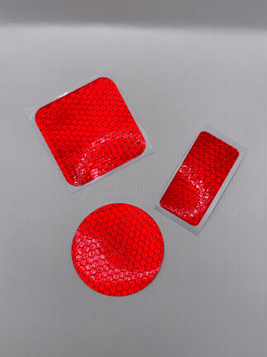 Reflektierende Sticker, rund, quadratisch und rechteckig in rot (3stk)
