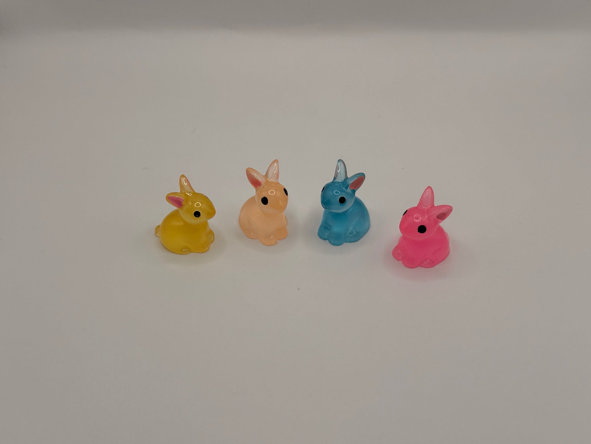 Leuchtende Mini-Hasen-Figuren im 4er Set (glow-in-the-dark), 2.3cm x 2.2cm