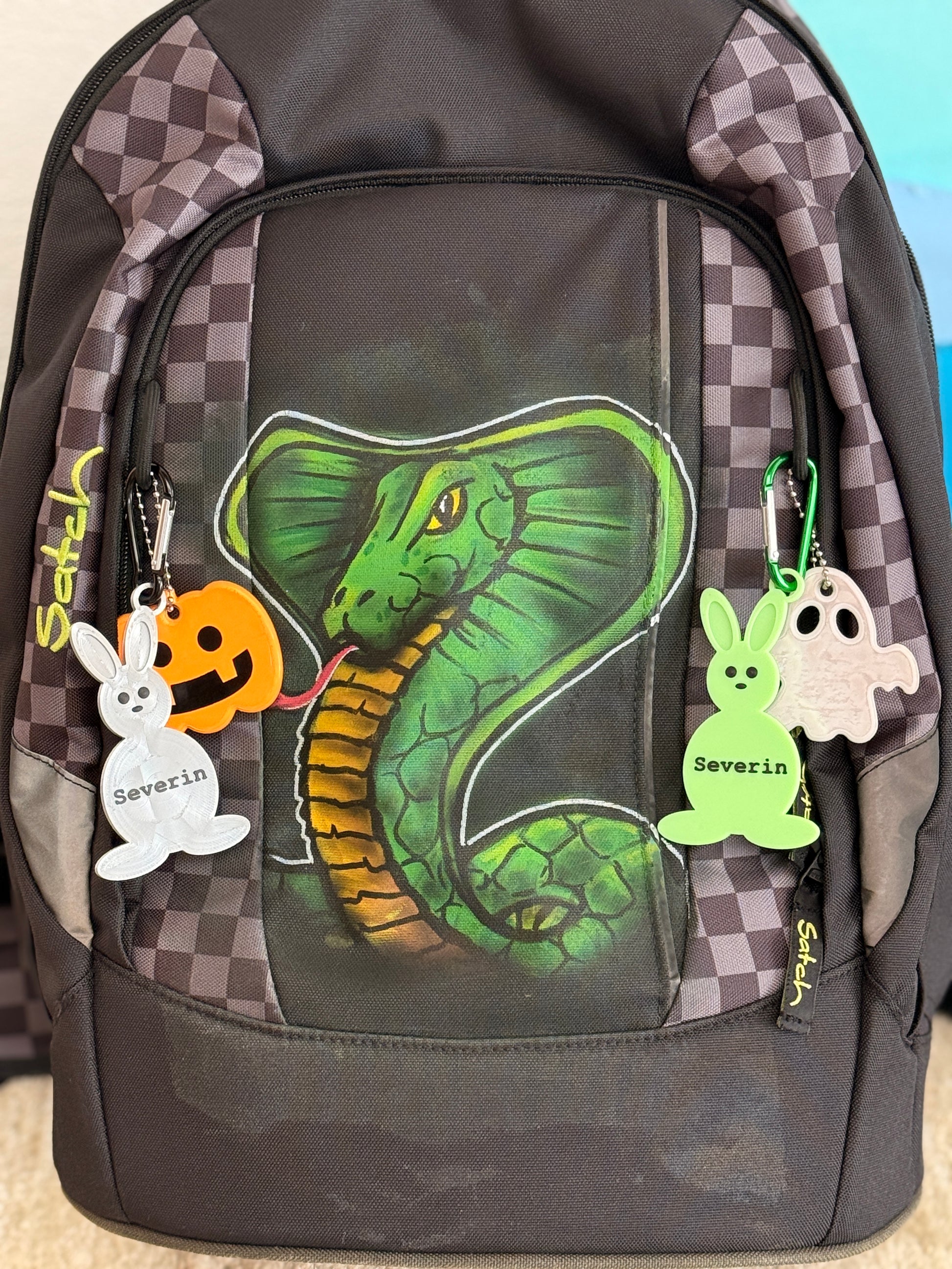 Lumi ist unser fröhlicher Hasen-Buddy – unser allererster, selbst gedruckter 3D-Anhänger in zarten Pastellfarben, entworfen im CAD-Design von Severin Egli (10 Jahre). Lumi liebt es, an Schultheks, Taschen und Schlüsselbunden zu hängen und sammelt gern neue Freunde.
