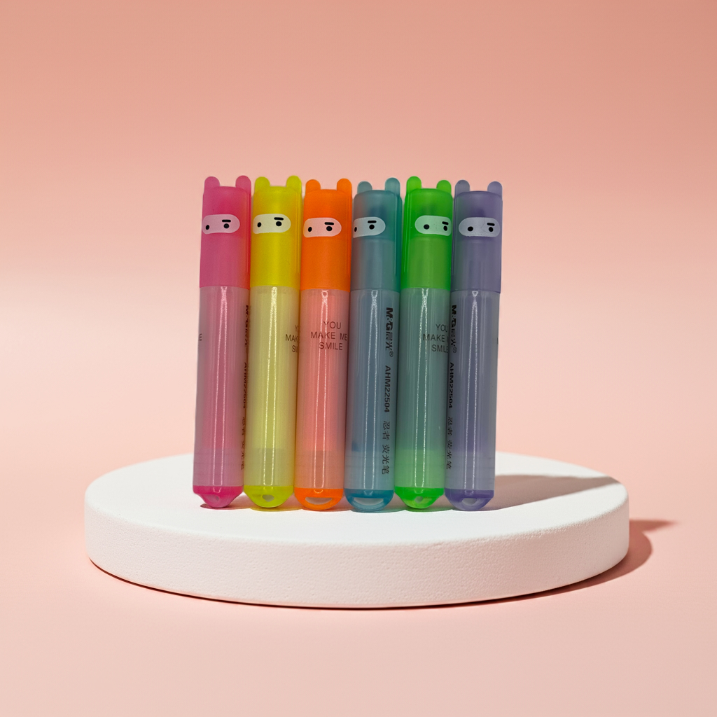 Diese niedlichen Mini-Leuchtstifte bringen Farbe und Freude in jeden Alltag! Im praktischen 6er-Set kommen sie in 6 fröhlichen Farben – violett, pink, gelb, grün, blau und orange. Jeder Stift hat ein lustiges Gesicht. Ideal für Schule, Büro oder als kleines Geschenk – diese Mini-Textmarker zaubern garantiert ein Lächeln ins Gesicht.