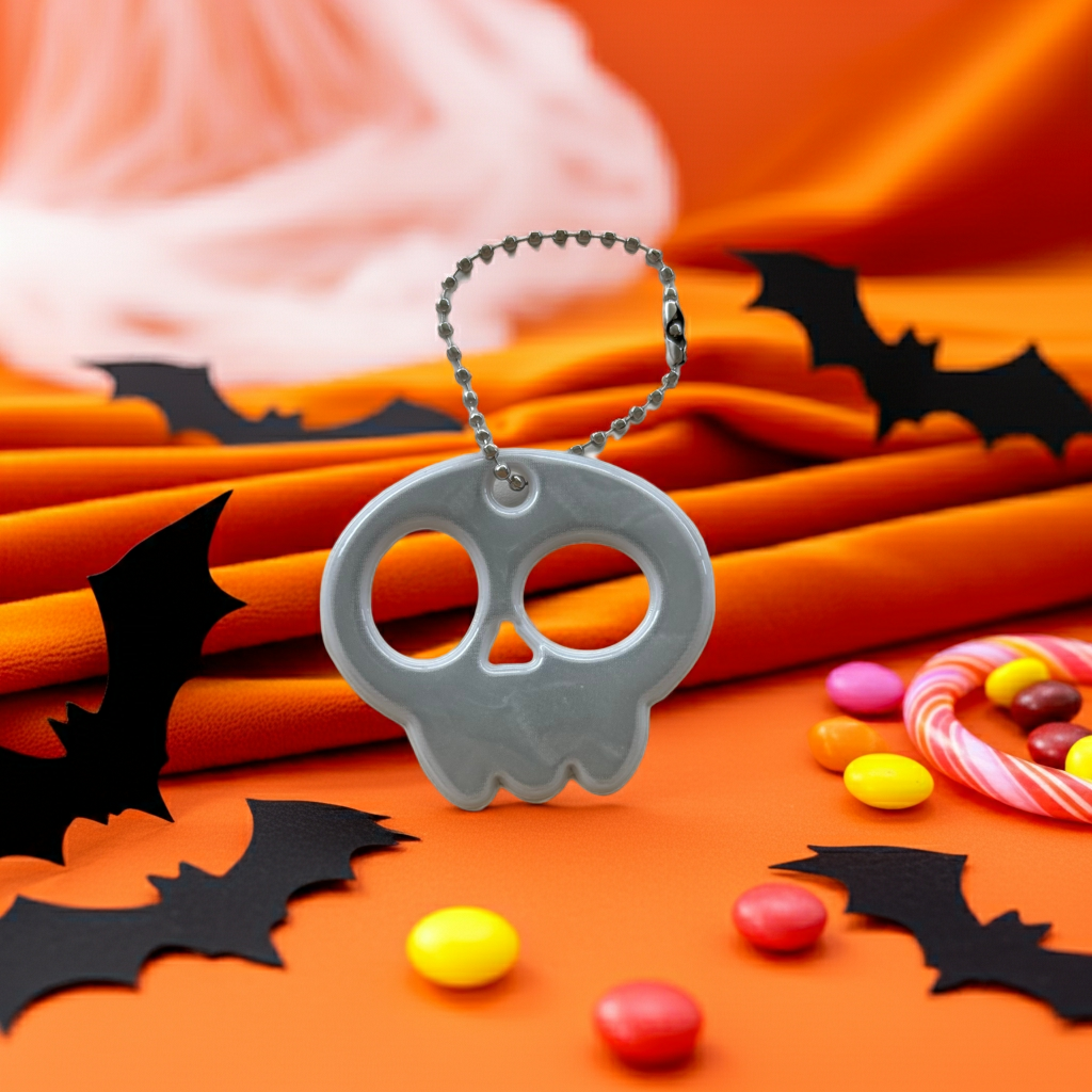 Unsere reflektierenden Totenkopf-Anhänger machen Rucksäcke, Taschen und Jacken zum kleinen Lichtblick – genau dann, wenn’s draussen düster wird. Für mehr Sichtbarkeit im Dunkeln. Jede Bestellung ist eine kleine Farb-Überraschung (siehe Beispielbilder).