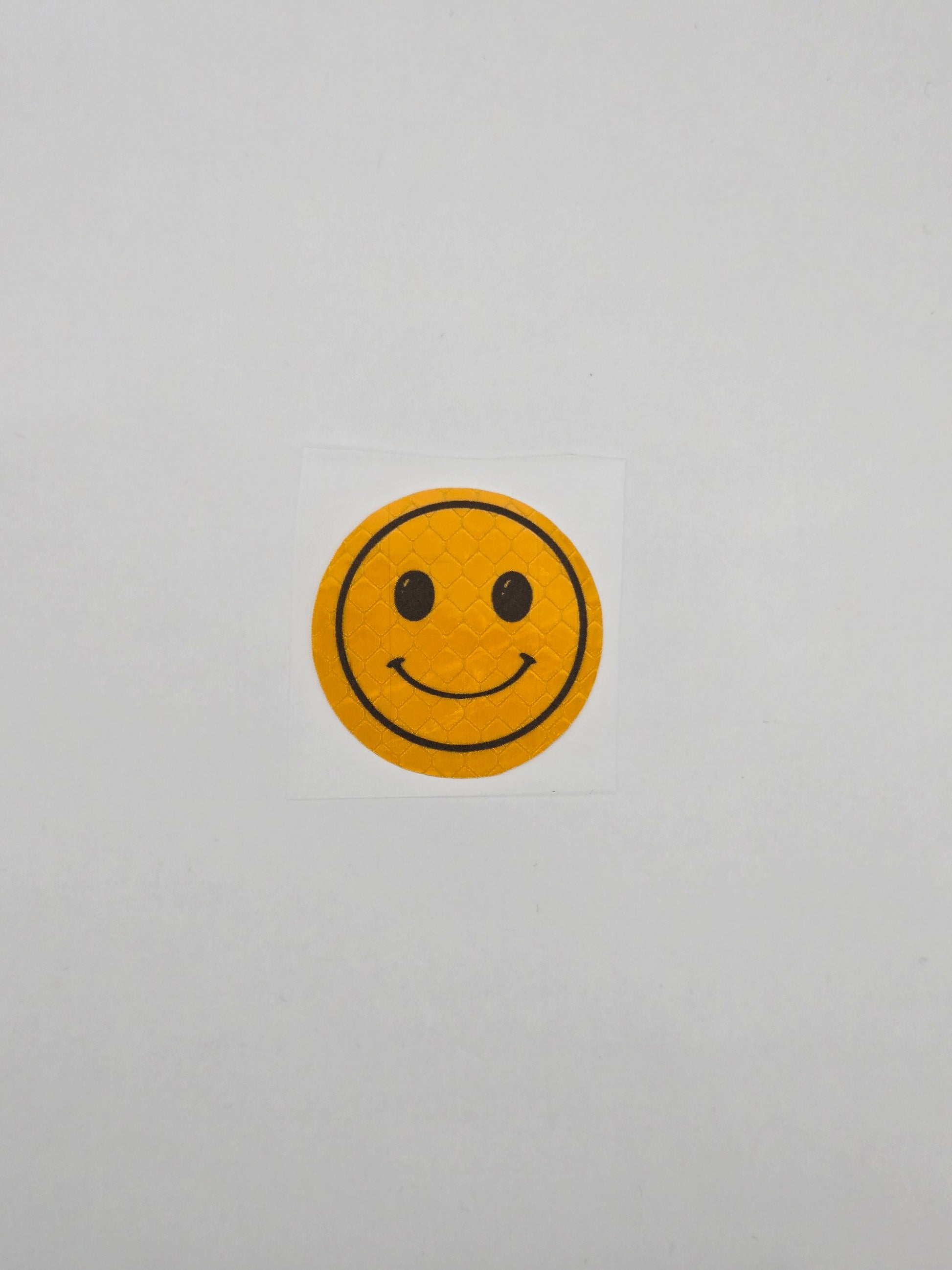 Dieser fröhliche Smiley Reflektor-Sticker sorgt für zusätzliche Sichtbarkeit im Strassenverkehr. Ideal für Velo, Helm, Scooter und alle glatten Oberflächen, auf denen der Sticker optimal haftet.